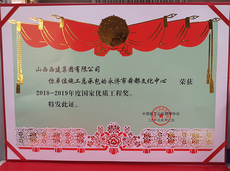 12月8日,2018-2019年度國家優(yōu)質(zhì)工程獎總結(jié)表彰大會在北京國家會議中心隆重召開,由西建集團公司承建的永濟市舜都文化中心項目獲“國家優(yōu)質(zhì)工程獎”,成為運城市首個榮獲國家優(yōu)質(zhì)獎的房屋建筑類工程,標志著西建公司高質(zhì)量發(fā)展取得了階段性突破。國家優(yōu)質(zhì)工程獎設(shè)立于1981年,是我國工程建設(shè)質(zhì)量方面設(shè)立最早、規(guī)格最高,跨行業(yè)、跨專業(yè)的國家級榮譽獎勵。