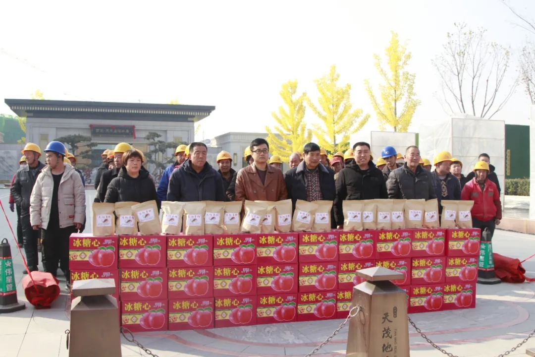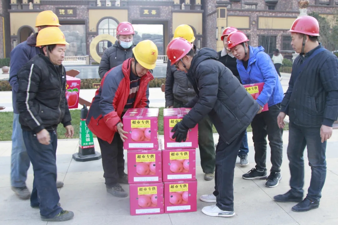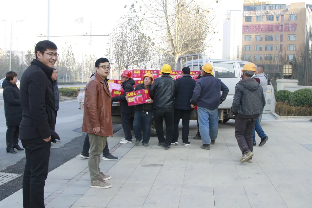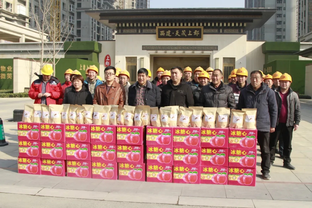 天茂房產(chǎn)分公司總經(jīng)理劉忠森接過(guò)村干部帶來(lái)的柿餅,拆了一袋,分給現(xiàn)場(chǎng)的員工們,高興的說(shuō):“這是我們家鄉(xiāng)的柿餅,大家都應(yīng)該嘗一嘗?!彼f(shuō)“非常感謝朱陽(yáng)村干部們對(duì)西建集團(tuán)的認(rèn)可,帶來(lái)家鄉(xiāng)的蘋果和柿餅慰問(wèn)咱們的農(nóng)民工兄弟,讓大家伙心里很暖,寒冬不再冷!”