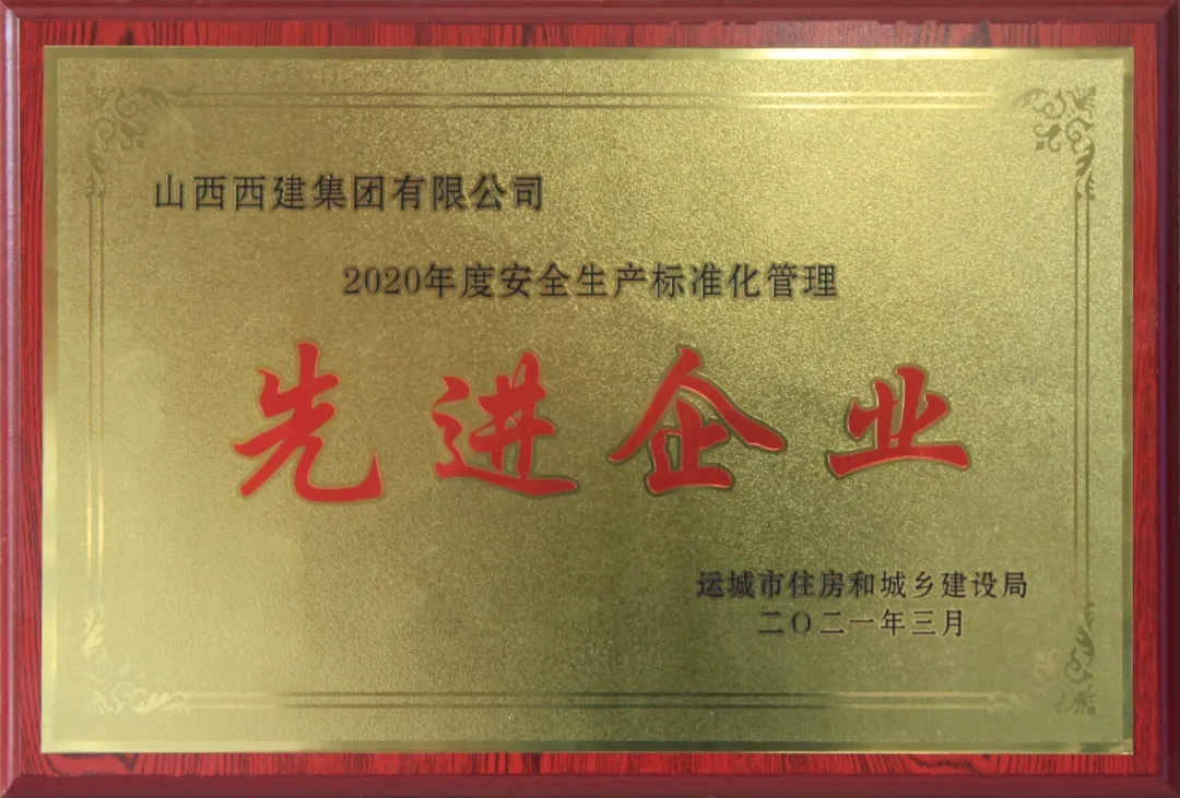 ▲山西西建集團(tuán)有限公司榮獲“2020年度安全生產(chǎn)標(biāo)準(zhǔn)化管理先進(jìn)企業(yè)”
