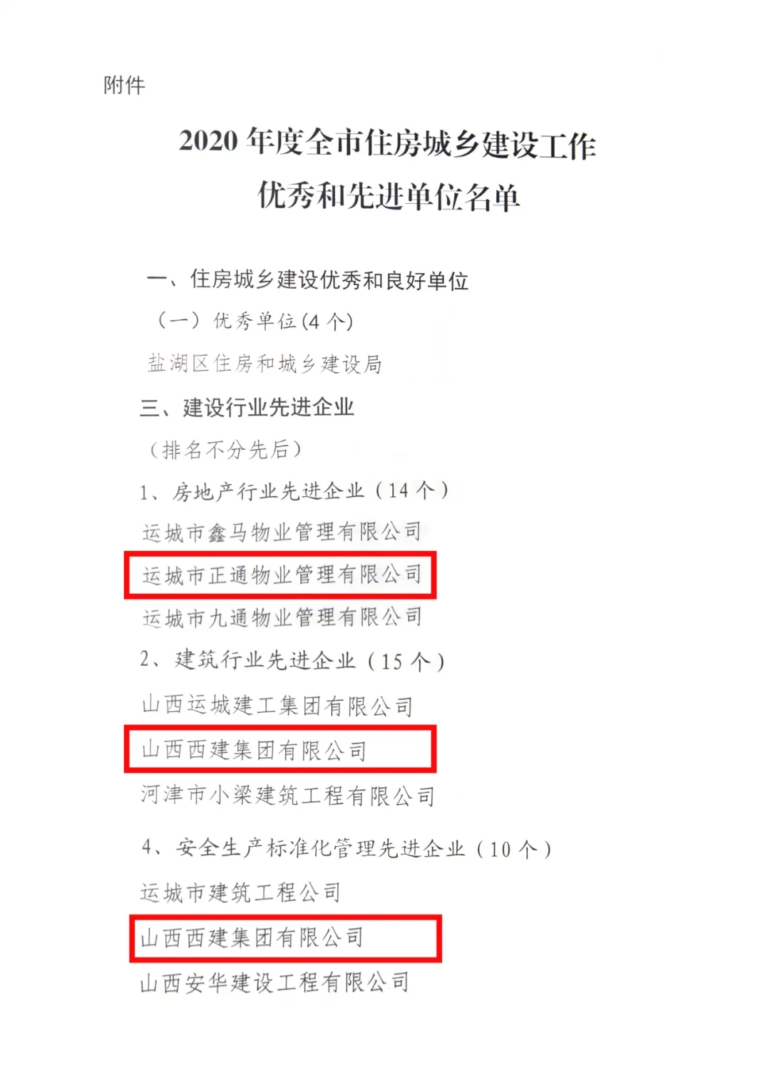 ▲山西西建集團(tuán)有限公司榮獲“2020年度建筑行業(yè)先進(jìn)企業(yè)”