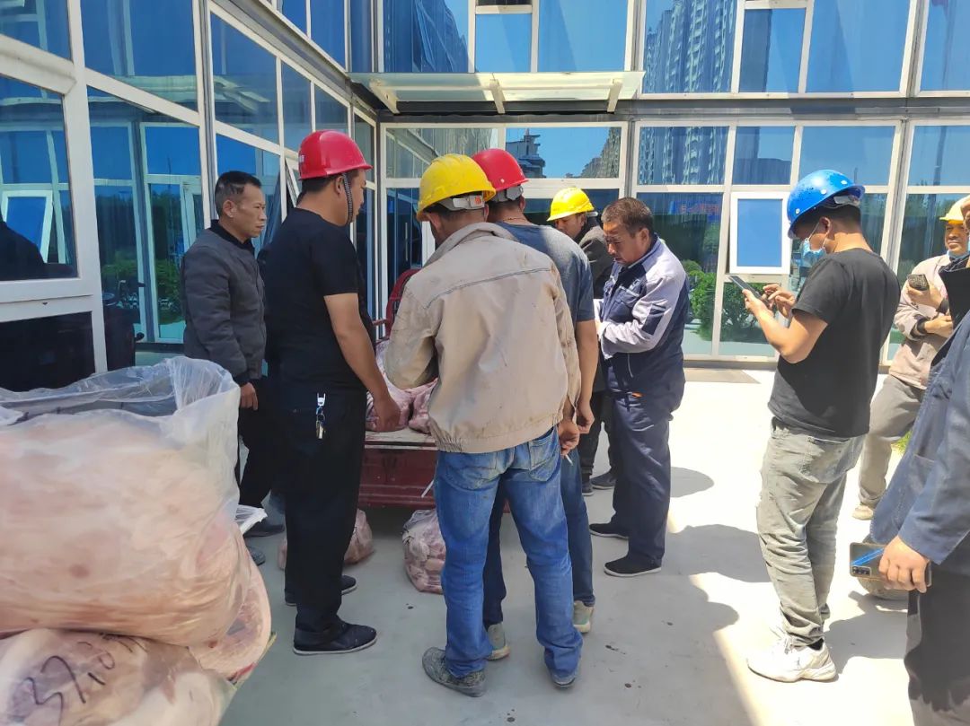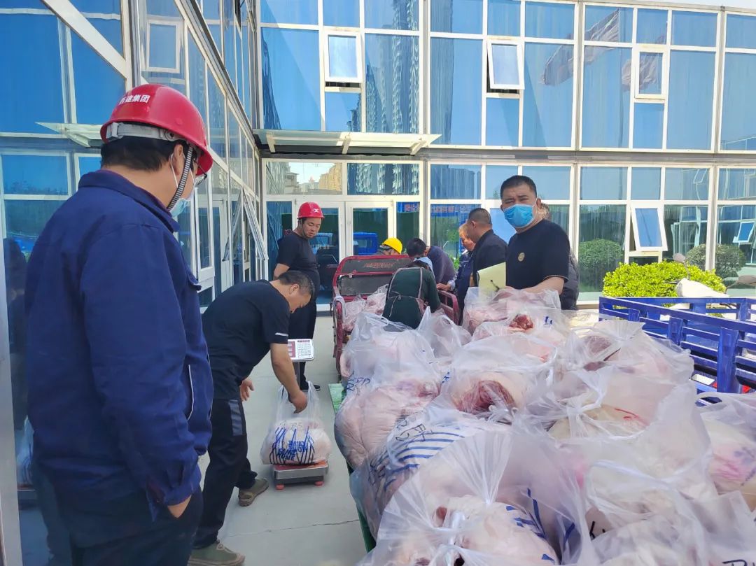 據悉,本次勞動節,天茂城分公司共為兩千多名農民工兄弟送去大肉慰問,用以改善伙食,讓大家感受到家的溫暖。