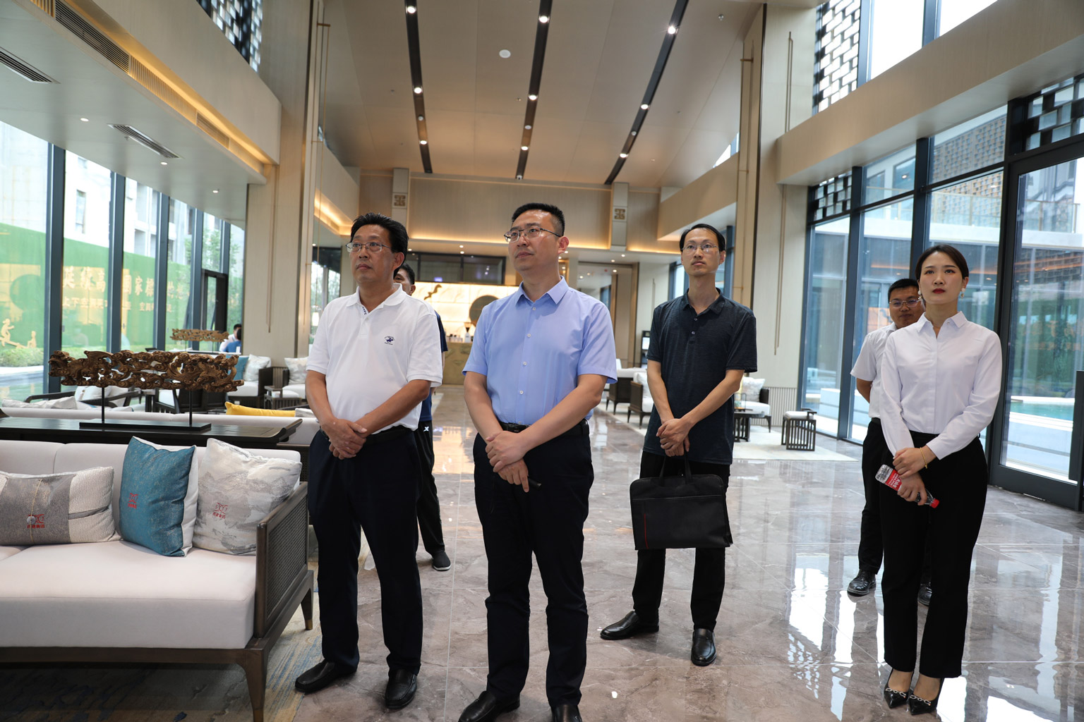 李培鴻實地參觀了天茂國賓府及文化景觀示范區,全面了解該項目總體規劃、項目進展、品牌建設等情況,與企業負責人親切交談,認真聽取疫情之下企業發展情況和項目建設中遇到的法律問題,提出指導意見。
