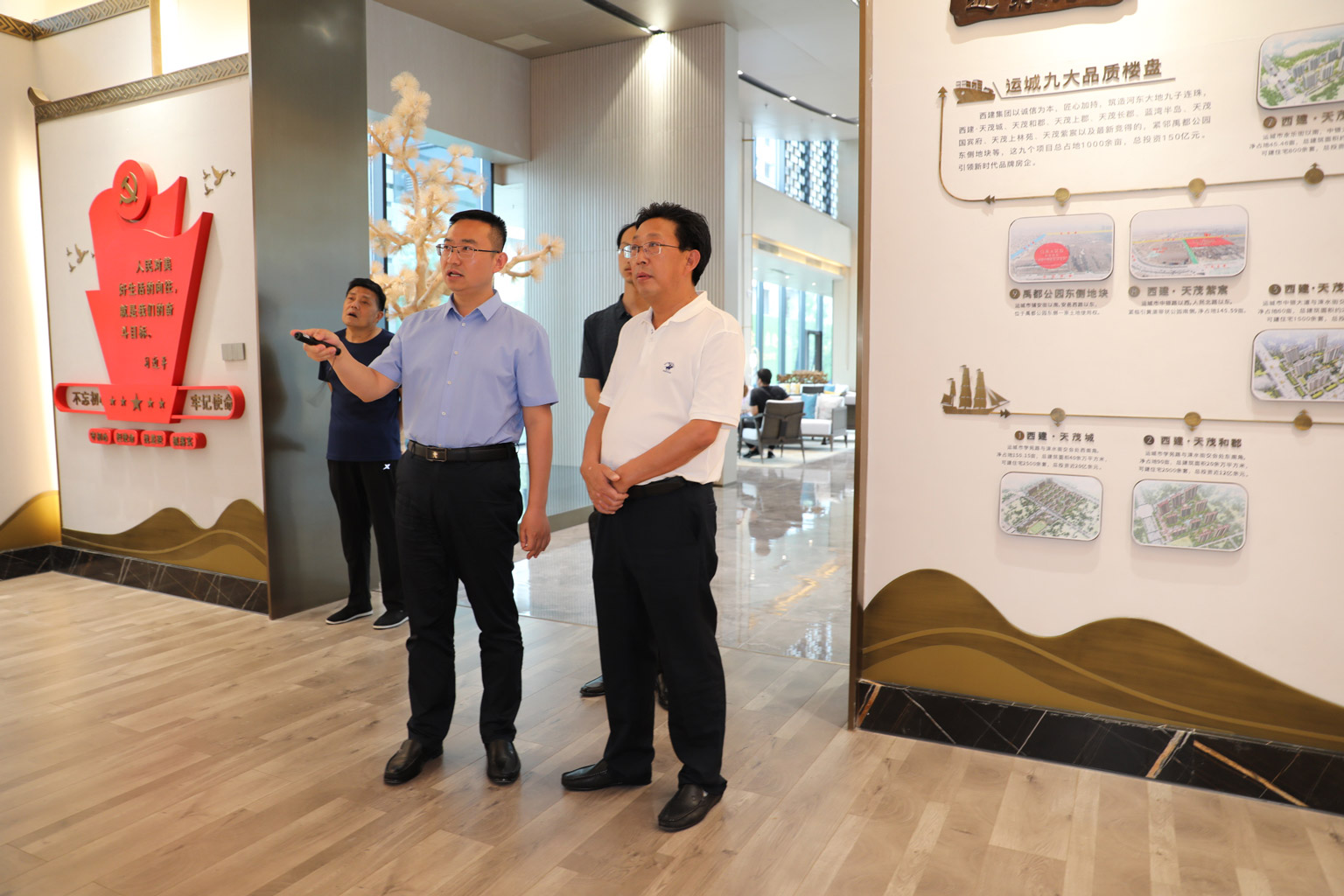5月27日,運城市委政法委主持日常工作的副書記李培鴻到西建集團,對“天茂國賓府”項目進行調研,了解項目進展情況,為企業排憂解難。西建集團董事長劉智強,西建天茂房產總經理劉忠森陪同。