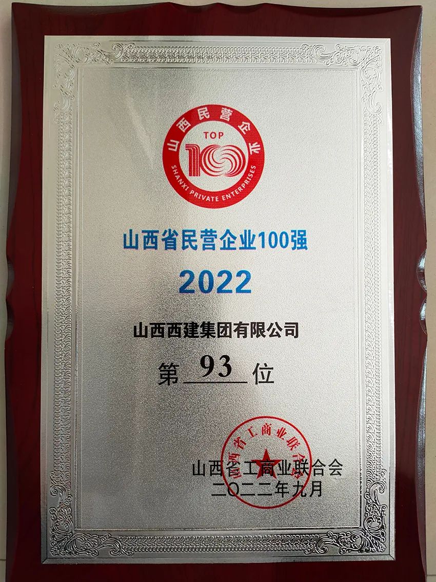 9月26日,2022山西省民營企業100強發布會舉行,會上發布了“2022山西省民營企業100強”系列榜單,西建集團是運城市唯一一家上榜的房產企業。