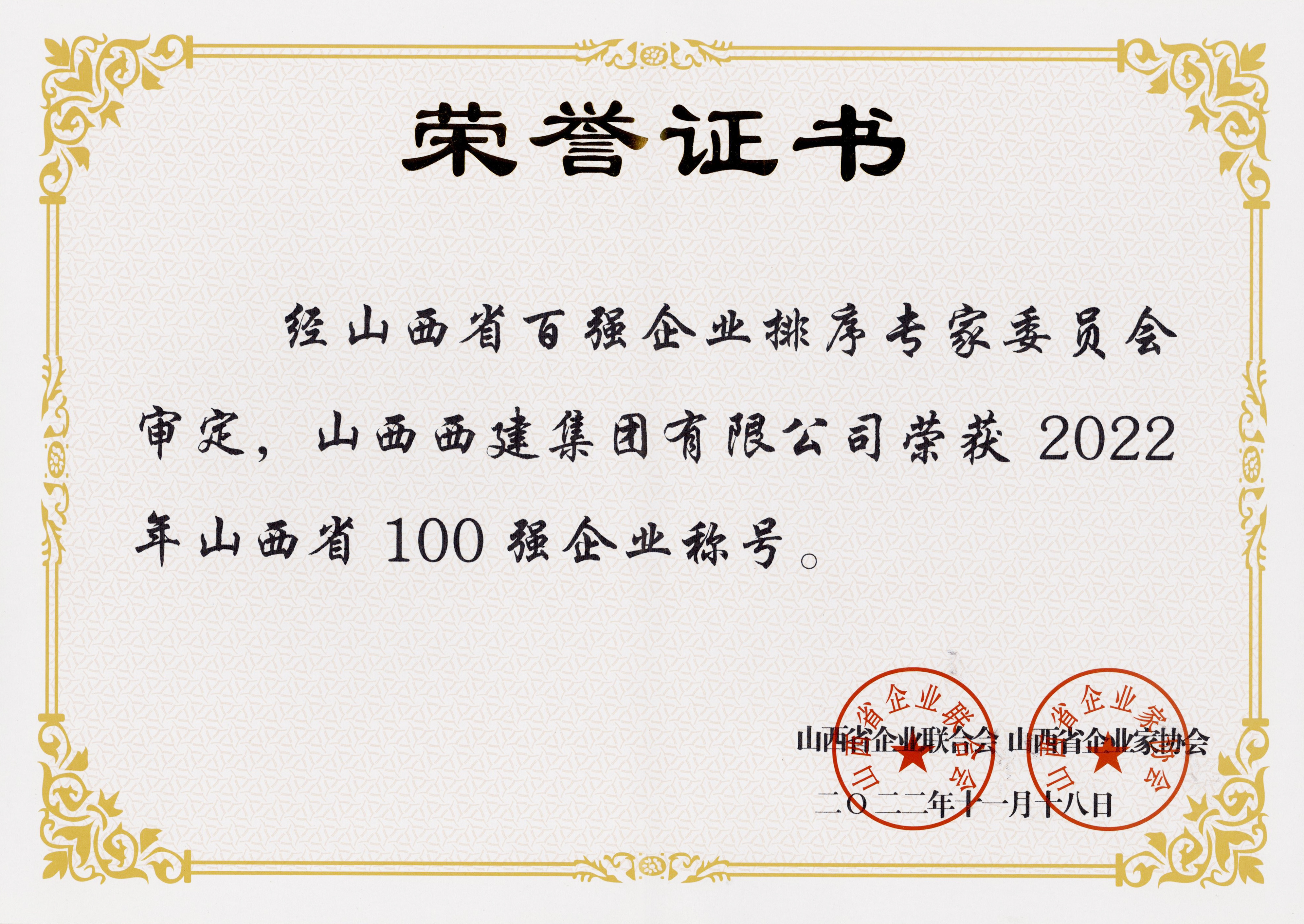 2022年,榮獲“山西省百?gòu)?qiáng)